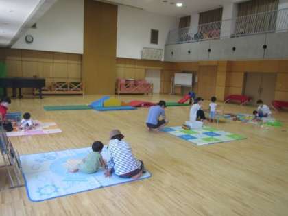 6月17日 教育相談うさぎ組(2歳児対象クラス)では,遊戯室のゆったりとした空間で遊んだり,テラスで泡遊びをしたりして楽しみました。