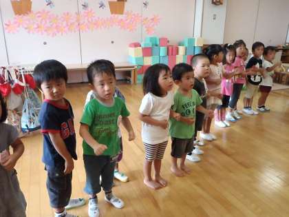 しばらくすると今度は,3歳児の保育室から「みつば幼稚園の歌」が聴こえてくるではありませんか。