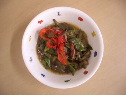 長ナスと賀茂ナスとシシトウの煮浸しを作ってくださいました。