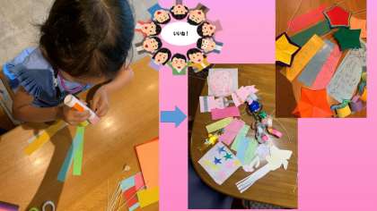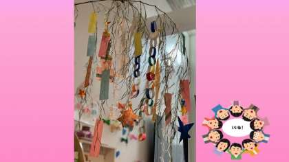 また、おばあちゃんのおうちで沢山の飾りを作り溜め、おじいちゃんが笹を準備してくれたので、それにも飾り付けをしました。