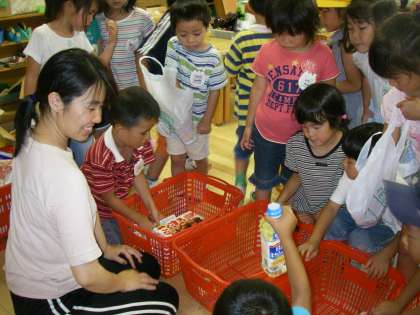 「ここ知ってる」とお家の人と買物にいったことのある子どもは,どこに何が売ってあるのかよく知っていて,さっと目的のところにいっていました。