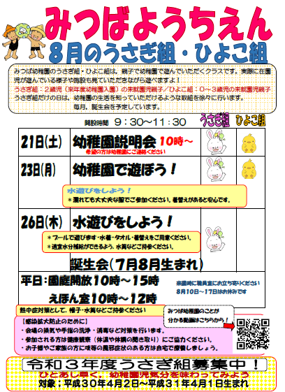 園庭開放などは平日(8月10〜17日を除く)行っていますのでお気軽にお立ち寄りください!