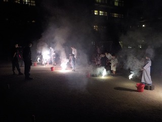 地域の消防団の方もかけつけてくださいました。消防団さんからは花火のプレゼントもいただきました。お陰様でたっぷりと楽しむことができました。ありがとうございました。