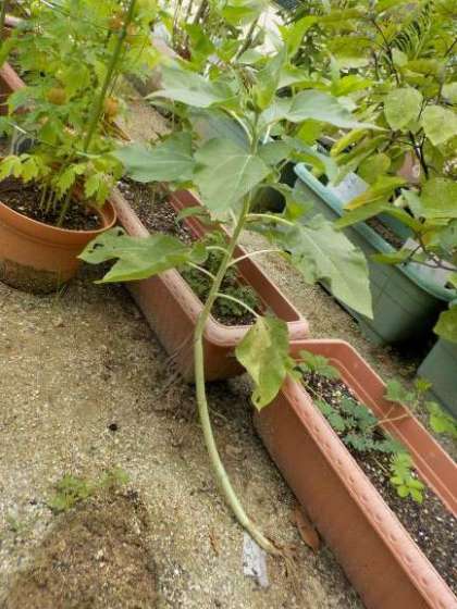 鉢と鉢の狭い間から倒れそうになってもお日様目指して伸びようとしてか,茎がずいぶん曲がっています。蕾もできてきました。