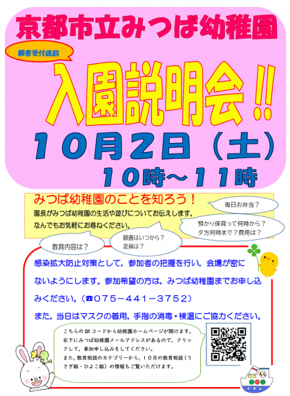 参加希望の方は,みつば幼稚園までお申し込みください。