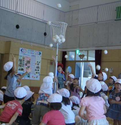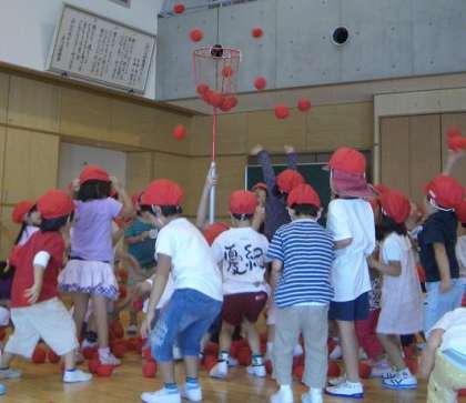誕生会のお楽しみの第2弾は玉入れです。