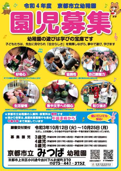令和4年度入園の願書交付・受付が,10月12日(火)から始まりました。