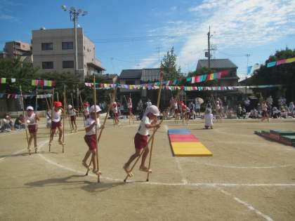 竹馬ではお家の方々に見てもらえることが嬉しくて,得意げな表情の子どもたちがたくさんいました。最後に全員で竹馬に乗った時には,沢山のあたたかい拍手をいただき,さらに子どもたちの自信になったと思います。