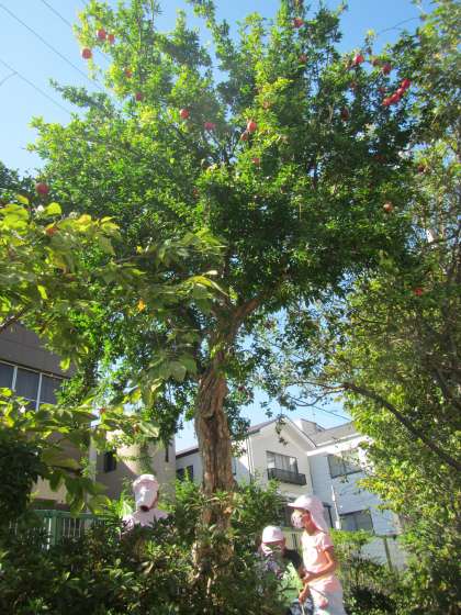 年長児が幼稚園のザクロを収穫しました。先日は代白柿の収穫もしています。