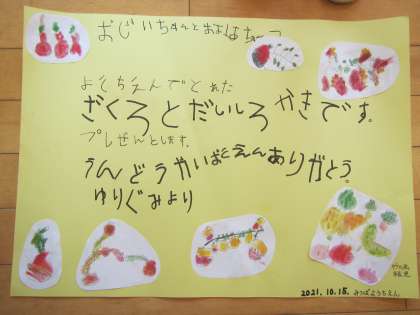 子どもたちがかいたザクロの絵も貼って手紙をかきました。文章も子どもたちで考えてくれました。