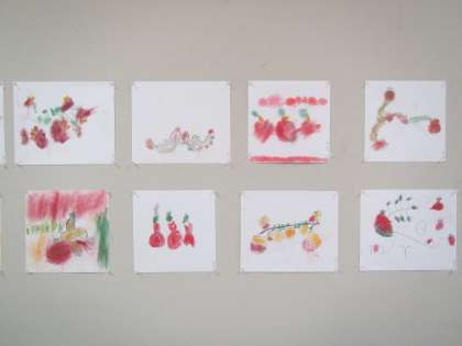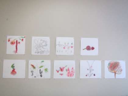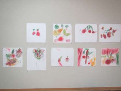 たわわに実ったザクロ。収穫したものを見て,年長ゆり組の子どもたちがかきました。