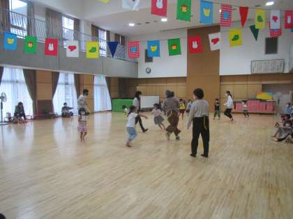 午後からは子どもたちがお家の人と一緒にしたい!と1番のリクエストだったしっぽとり。保護者の皆様にもご協力いただいて,親子しっぽとりをしました。自分のお家の人のしっぽをとる,といういつもとは違うルールで遊びましたが,子どもたちの笑顔があふれていました。