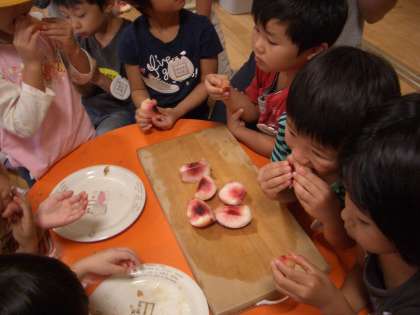 という子どももあり,一度桃を味わったり,手触り香りも経験してみようということにしました。