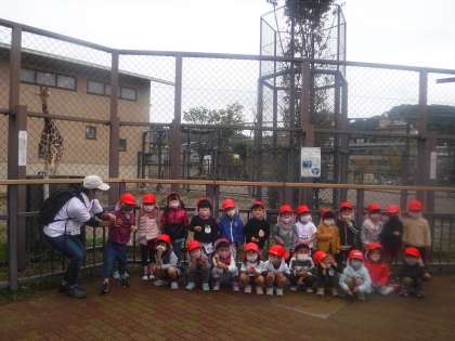 もも組の子どもたちは貸切りのバスに乗り,動物園近くまで行き,年長児が市バスで追いかけてきてくれて,合流し,手をつないで動物園の中の荷物置場まで連れて行ってくれました。先週に年長児と顔合せもしているので,みんな安心した顔で動物園まで行くことができました。