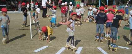 園庭の隅にコースを持ってきて,何度も何度も繰り返して楽しんでいる子どもや,広場をぐるーっと一周してくる子どもなど,すごい頑張りです。