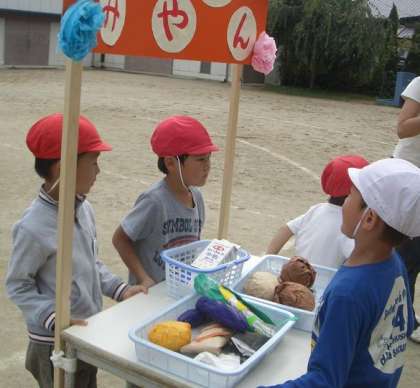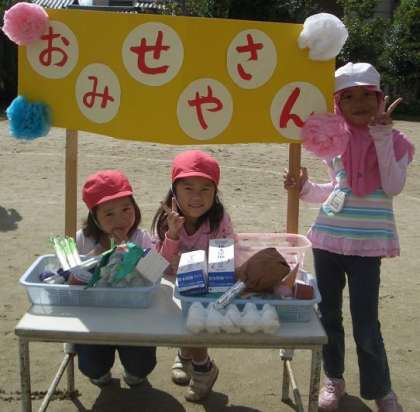 3歳児のお買物の競技のときには,お店屋さんの店員さんをしてくれています。