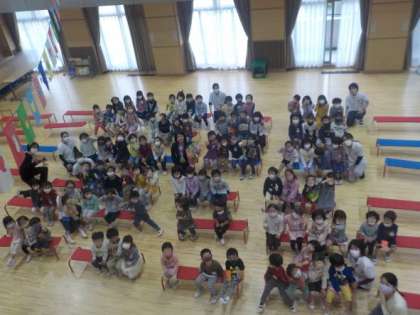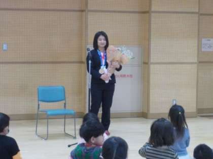 ですが,子どもたちが「みつば幼稚園のうた」(園歌)歌うと,芳田選手の目に光るものが…。心豊かな,やさしい一面をお持ちなんだなあと感じました。