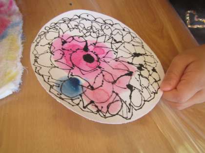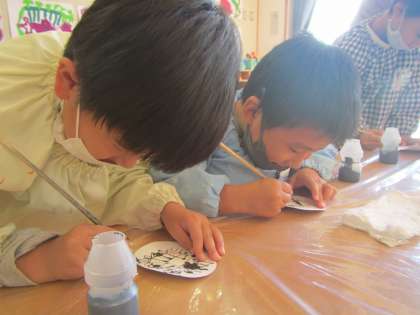 墨汁と絵の具で遊びました(年長児)
