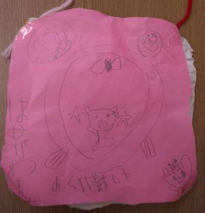 メダルの裏には,自分たちのメダルにものっていたくまさんと,「○○せんせい よくがんばりました」というメッセージ入り。