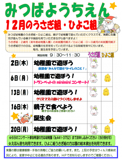 みつば幼稚園12月教育相談(うさぎ組・ひよこ組)ご案内