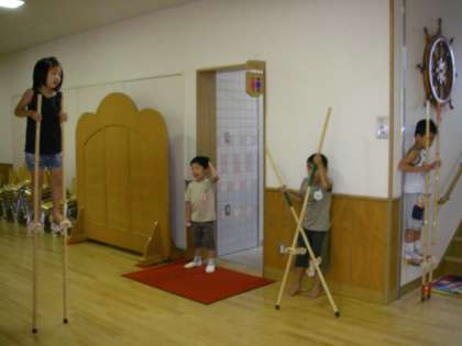 ゆり組の子どもたちは,日曜参観でお家の人と一緒に作った竹馬にチャレンジしています。たくさん乗れる子供たちが増えてきています。園庭でちょうどいい踏み台をさがしてチャレンジしていたり,園内ではもたれるところをさがしてチャレンジしたりしています。友達同士のいい刺激のしあいもあり,頑張っているのでしょう。一節ずつあげて高くしたり,高くしたけれど戻してたくさん歩くことを目当てにしたり,横歩きをしたり,巧技台の坂道をあるいてみたりと自分なりに考えてチャレンジしています。