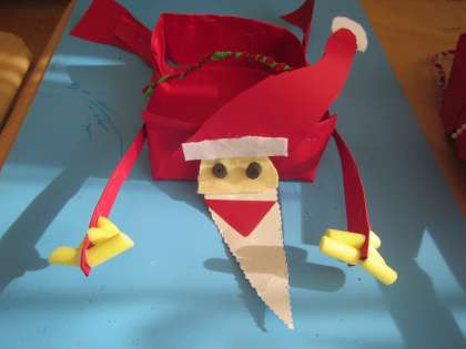 年長ゆり組の子どもたちは,今年のプレゼントバッグはサンタクロースをつくっています。
