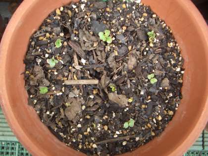 先週蒔いた種から,かわいいふたばが顔を出しています。