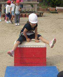 4歳児のばら組は,あこがれの跳び箱に挑戦です。