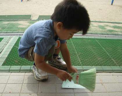 一緒にしていた3歳児の子どもが,最後の片付けや掃除まで手伝ってくれました。