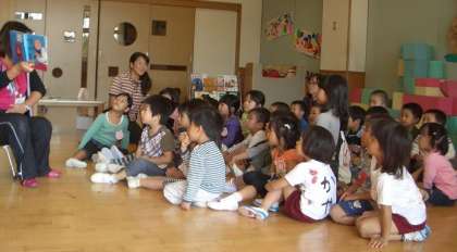 最初に担任の先生から絵本を使ってトイレの話を聞きました。
