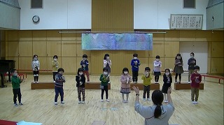 楽器遊びでは先生から目を離さず,みんなで息を合わせようと真剣です。