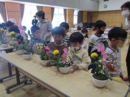 最後は,自分や友達が生けた作品を互いに見合いました。
