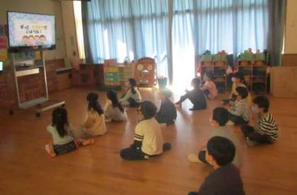 3歳児・4歳児の子どもたちから修了する5歳児の子どもたちにビデオメッセージが贈られました。顔なじみの3歳児4歳児の友達からのメッセージはちょっぴり新鮮でしたが,自分たちに贈られた言葉を聞いてみんな嬉しそうにしていました。