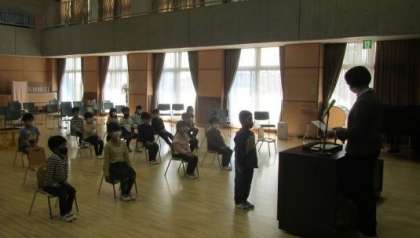 初めての練習では少し緊張した表情が見られましたが,ひとりずつ証書を受け取る姿はとても立派でした。きっと当日も成長した姿を見せてくれることでしょう。