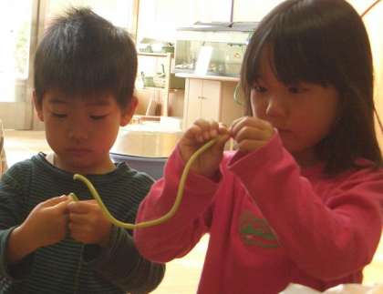 とつるの始末をし始めると,子どもたちが集まってきました。