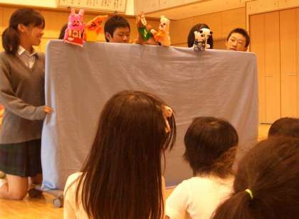 今日は,自分たちで手作りした手袋人形で人形劇をしてくれました。