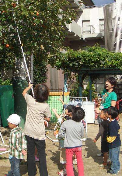 今日は,園長先生も呼んできて,高枝切りバサミで枝ごと切ってもらっていました。