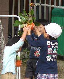 いつものように柿をいっぱいカゴにいれて園長先生にお願いにやってきた子どもたち