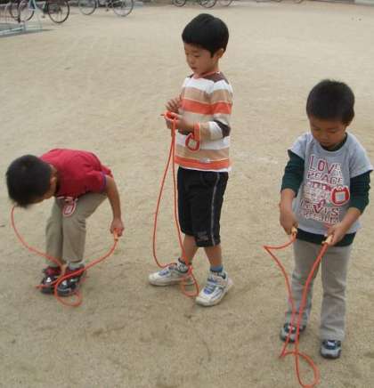 一本歯げたとのかかわりの中で,心も体もぐんと大きくなったばら組の子どもたち,なわとびとのかかわりの中でどんなことが育っていくのでしょうか。