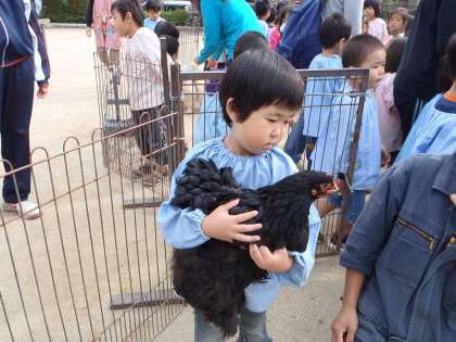 おやおや,サークルの中では,大きなニワトリを「よいしょっ」と抱っこしている人も出てきました。だんだん調子が出てきたようですね。