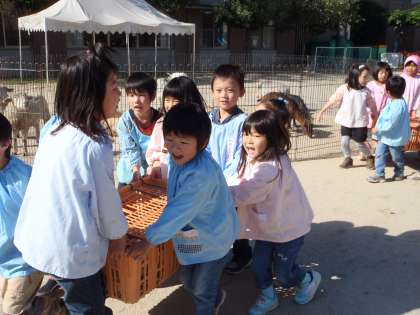 事前に年長組さんには,動物の帰る用意の手伝いをしてほしいということを言ってもらっていたので,お弁当を大急ぎで食べて,集まってきてくれました。