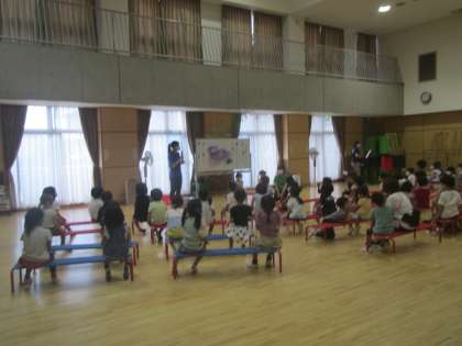 今年度3回目のお誕生会となり,3歳の子どもたちもみんなで「集う」こと,また「お誕生児のお友達に歌のプレゼントをすること・・などの楽しさを味わっていました。