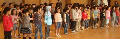 それぞれの幼稚園で楽しんできた歌やダンスを,たくさんのお友達と気持ちを合わせて歌ったり踊ったりすると,楽しさも倍増です。