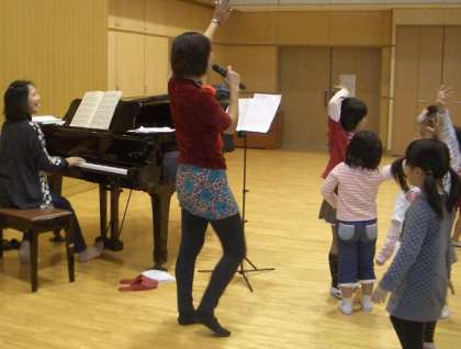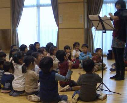 きれいなピアノと歌に合わせて体を動かしたり,耳をすまして聴いたり,一緒に歌ったりして楽しいひと時を過ごしました。