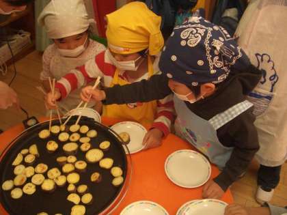 並べたり,ひっくりかえしたり,お皿にとったりして次々に焼けてきました。