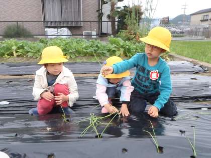 冬の間にエンドウマメもタマネギもグングン大きくなります。収穫する時は,ばら組さんがゆり組さんになってからです。ばら組さんもこれから心も体もどんどん大きくなっていきます。足どりもしっかりしてくることでしょう。