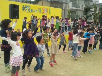 5歳児のゆり組が上京区にある市立幼稚園の5歳児と一緒に舞台に立ちました。