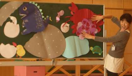 みんなで「でておいで」と声をかけると,お誕生のこぎつねが飛び出してきました。