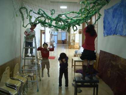 園庭から園舎までのばした緑のカーテンがイメージなのでしょうか。
