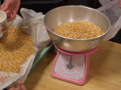 降園前には,今日とれたポップコーンがどれくらいあるか量ってみることにしました。